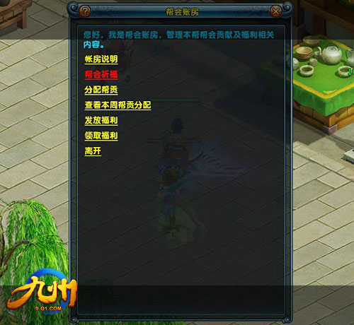 帮派祈福,玩家可在帮派帐房处祈福,获得大量帮贡:
