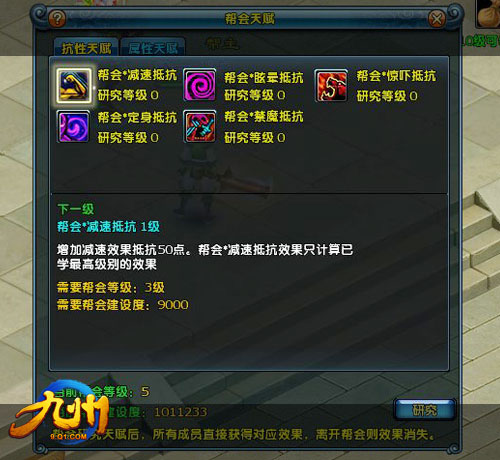 b、抗性,与帮会天赋一样,提高抵抗减速、晕眩等效果,级数越高越容易抵抗此类效果;