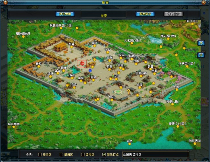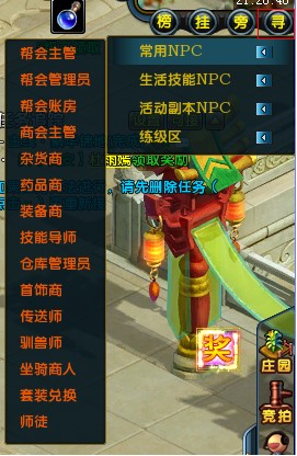 通过该按钮,玩家可以方便找到所在地图的NPC和怪物,点击相应的NPC名字或者怪物即可自动移动到目标附近。