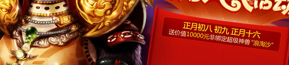 - 特别奖励活动期间,系统将在随机某个时间发出一份特别奖励---神兽“浪淘沙”或坐骑“冥火麒麟”;每个大区必然出现一只独一无二的神兽“浪淘沙”。全区唯一的超级神兽将花落谁家,让我们一起来期待吧!