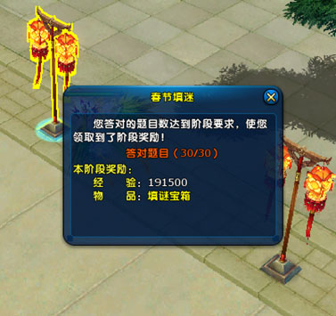 答对一定数量的灯谜,就能获得额外奖励哦。若当日答满30道灯谜,就能获得当天的大奖!