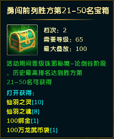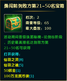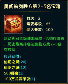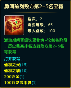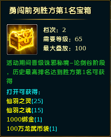 活动上线至12月31日,玩家可多次参与诛邪秘境,取成绩最好的参与名次发放奖励,胜方和败方前50名都可以获得勇闯前列奖励,奖励在活动结束后7个工作日内通过系统邮件发放。